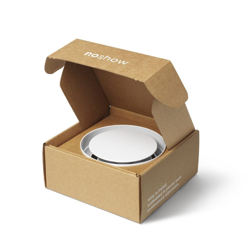 Het klinkt misschien gek, maar wat het meest opvalt aan het NoShow ventilatieventiel is dat hij niet opvalt. Geen onaantrekkelijke ventilatiedop die je strakke plafond bederft, maar een elegant designventiel dat volledig vlak kan worden weggewerkt. Daarbij is hij ook nog eens instelbaar, eenvoudig te monteren en makkelijk schoon te maken. En toch doet hij goed wat hij moet doen: ventileren!